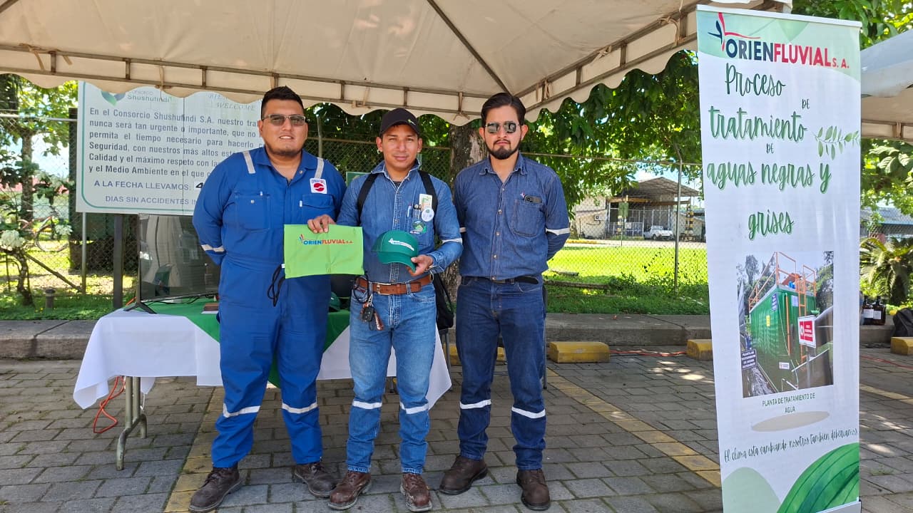 Durante la jornada del sábado 25 de octubre, Orienfluvial presentó su proceso de tratamiento de aguas negras y grises, resaltando las buenas prácticas ambientales aplicadas en sus operaciones. La exposición destacó los avances en manejo responsable de recursos, control de parámetros ambientales y fortalecimiento de la cultura ambiental entre sus colaboradores.